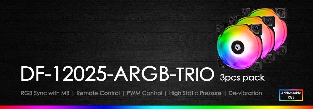 KIT 3 FAN CASE ID-COOLING DF-12025-ARGB TRIO 3pcs Pack ( 3 quạt) - (ID-FAN-DF-12025-ARGB-TRIO)