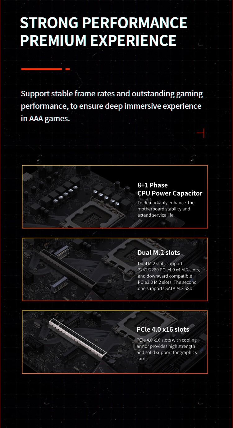 Processor | Support the 13th and 12th generation Intel adapting to the LGA 1700 slot of the motherboard ® Core TM, Pentium ® And Cylon ® Processor |