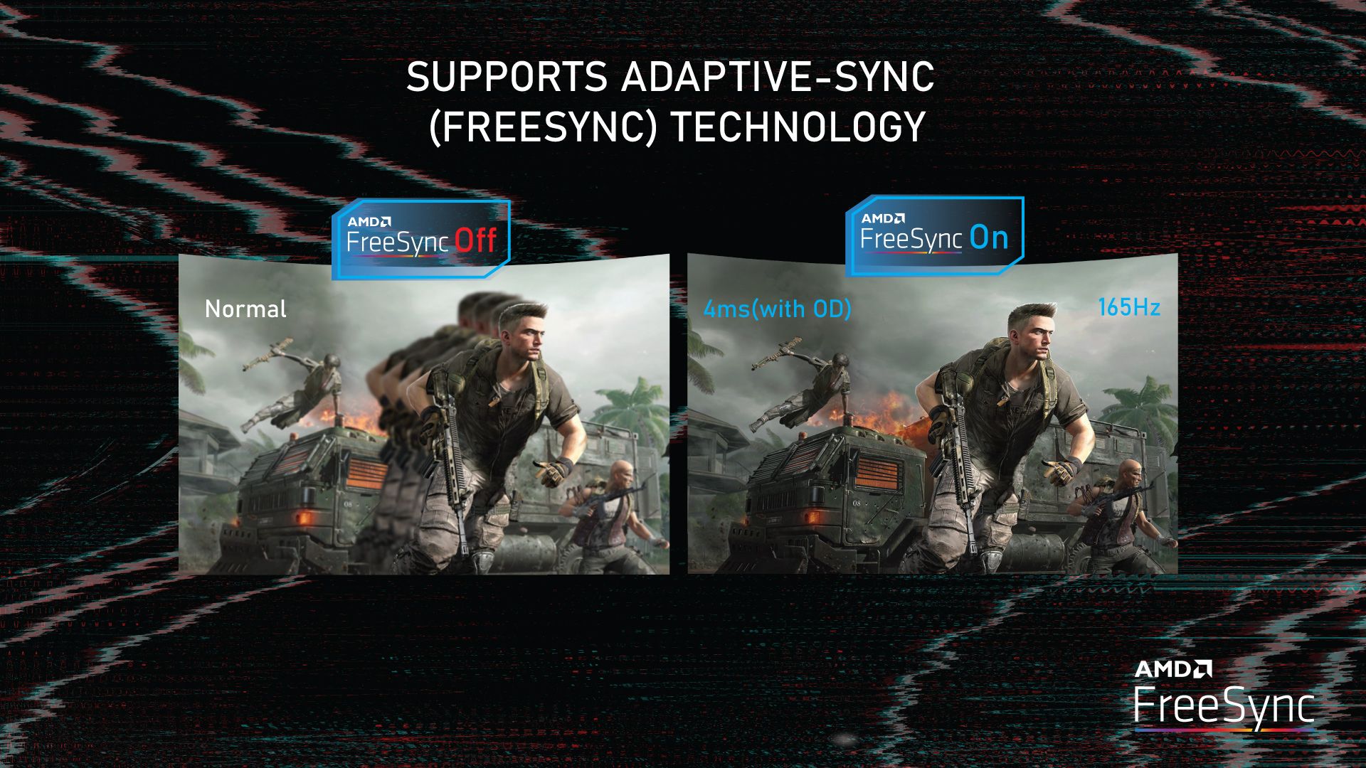 E-ROG series có tốc độ làm mới 165Hz* nhanh và thời gian phản hồi 0,4 ms (GTG) với tính năng Adpter sync Compatible để loại bỏ bóng mờ và mang lại trải nghiệm chơi game liền mạch, không bị xé hình