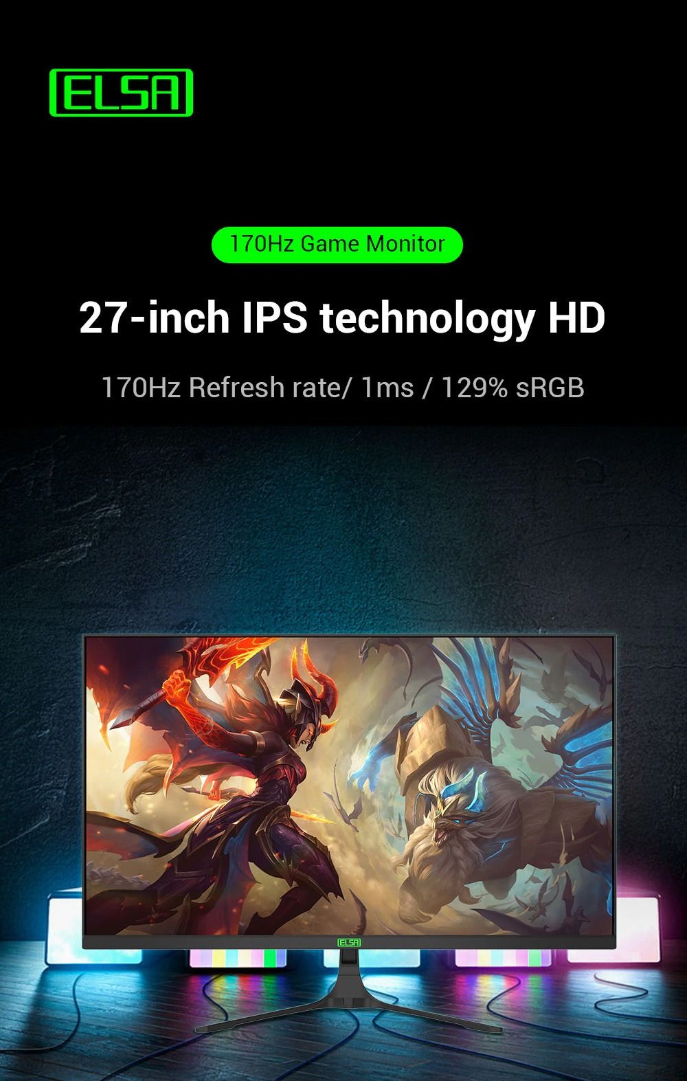 Tên sản phẩm : Màn Hình ELSA 27inch IPS Tràn Viền 170HZ GAMING 27F7 - BLACK ( Sản phẩm đến từ VSP )