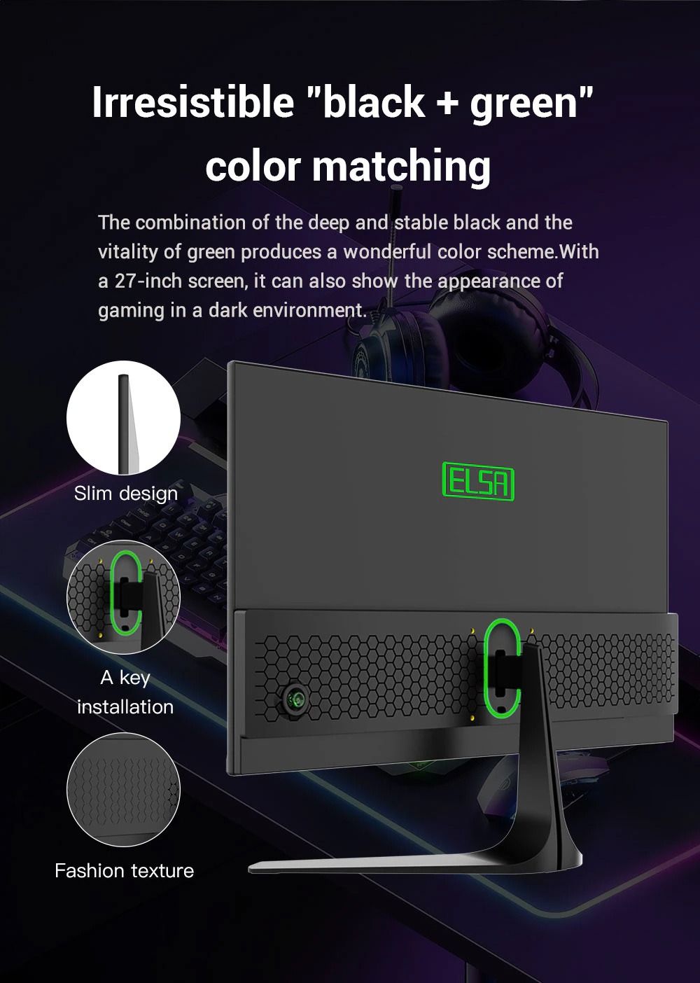 Màn Hình ELSA 27inch IPS Tràn Viền 170HZ GAMING 27F7 - BLACK ( Sản phẩm đến từ VSP )