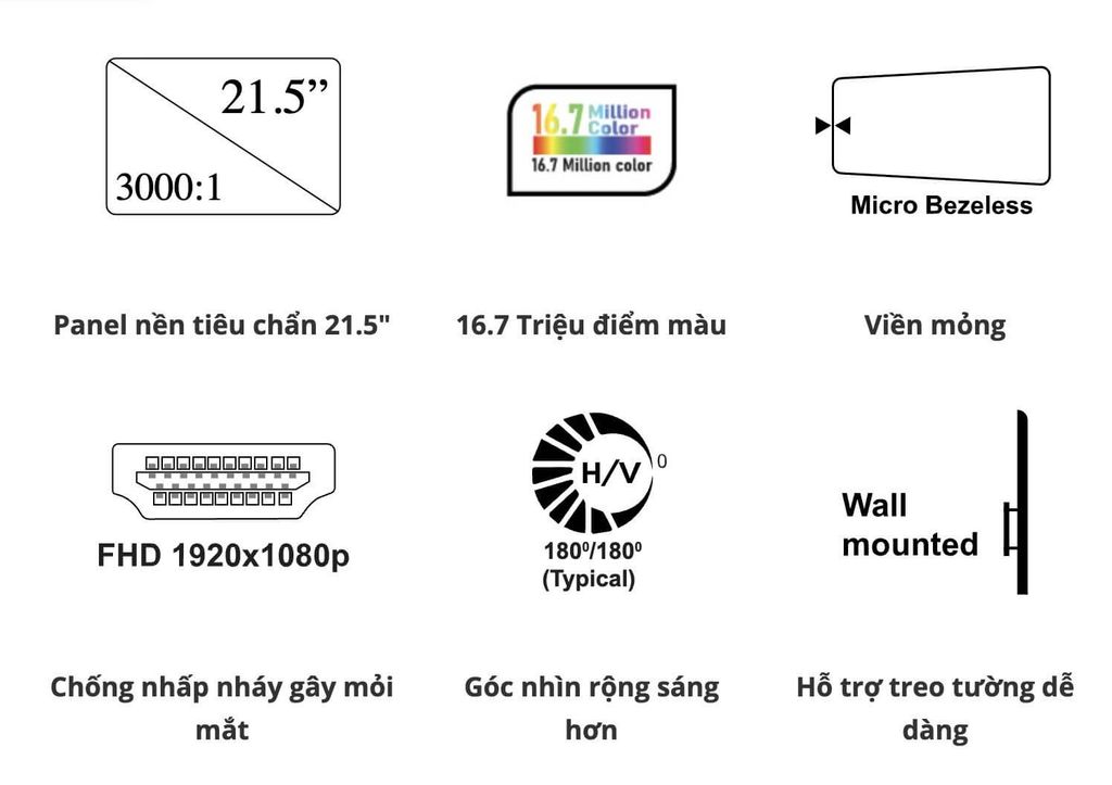 Màn hình tràn viền VSP sống động mọi chi tiết, sắc nét đến từng điểm ảnh nhờ tấm nền LED VA 1.6m triệu màu. Hiển thị màu sắc đẹp hơn, hiển thị trung thực hơn. Độ phân giải cao hơn hiển thị từng tông màu tươi sinh động, màn hình tràn viền VSP cho hiển thị khung hình rộng lớn không chỉ mang đến trải nghiệm xem vượt trội, mà còn thúc đẩy hiệu suất làm việc tối ưu.