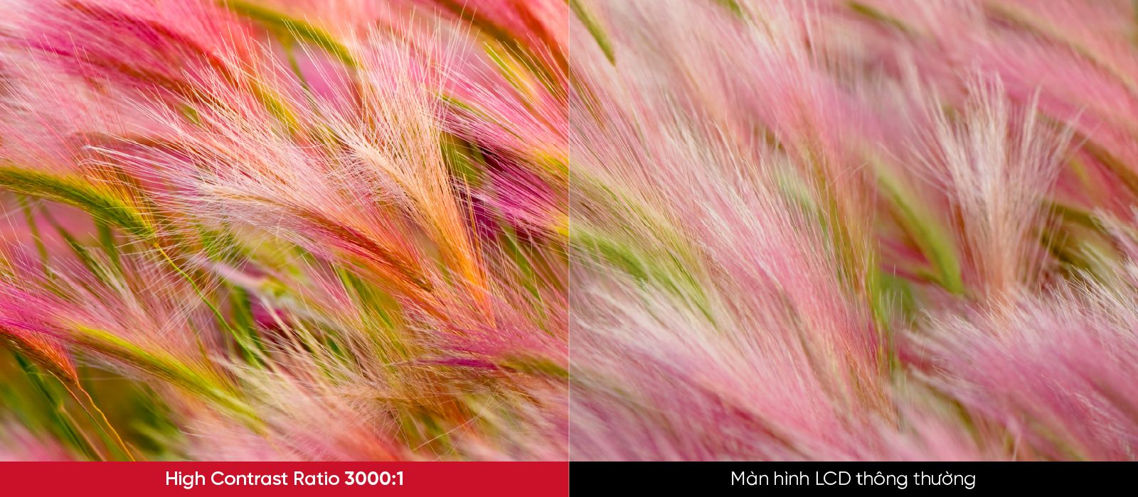 Tỷ lệ tương phản 3000:1 tự động nâng cao độ tương phản của màn hình bằng cách điều chỉnh độ sáng của đèn nền để đạt được màu đen tối nhất và màu trắng sáng nhất – mang lại hình ảnh sống động như thật