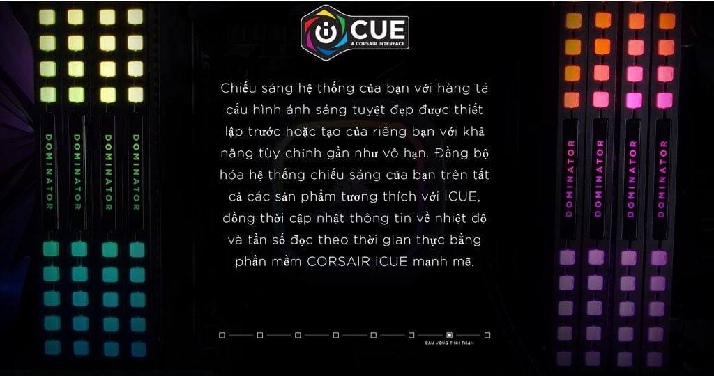 Phần mềm Corsair iCUE mang lại khả năng tùy chỉnh không giới hạn với hiệu ứng ánh sáng RGB cực kỳ lộng lẫy, có thể đồng bộ hóa cực tốt trên tất cả các sản phẩm tương thích iCUE và giúp bạn cập nhật thông tin về nhiệt độ và tần số hoạt động theo thời gian thực