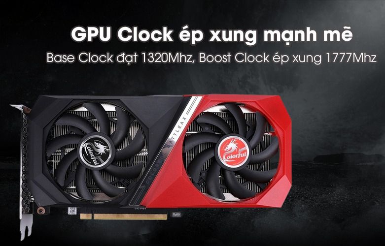 Sở hữu 2 quạt tản nhiệt độc đáo giúp hệ thống của máy luôn ở trạng thái mát mẻ. Ngoài thiết kế ấn tượng, card màn hình Colorful khi ở điều kiện thường, vi xử lý chạy ở tốc độ với Base Clock đạt 1320Mhz và Boost Clock ép xung mạnh mẽ đạt đến 1777Mhz cho việc xử lý hình ảnh một cách vượt trội và dễ dàng