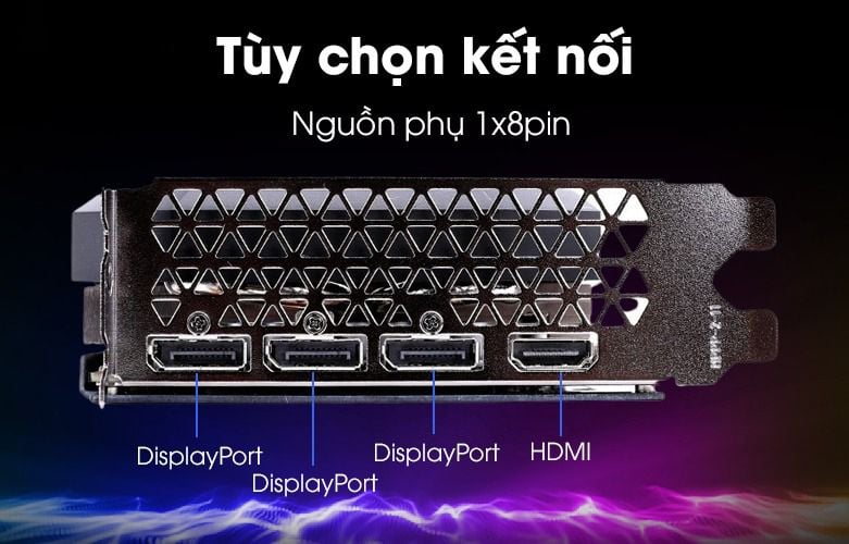 olorful GeForce RTX 3060 NB DUO còn được chính hãng trang bị thêm cổng giao tiếp PCI-E x16 thông dụng giúp cho việc truyền tải dữ liệu một cách nhanh chóng và sử dụng một đầu cấp nguồn 8-pin. Chiếc card còn tích hợp thêm các cổng giao tiếp tiện ích khác bao gồm: 1 cổng xuất hình HDMI và 3 cổng DisplayPort