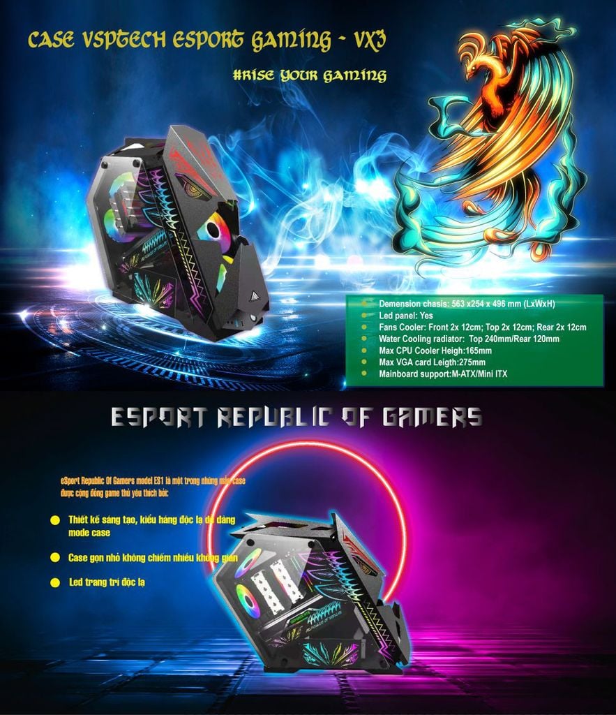 Tên sản phẩm : VỎ CASE ES3 GAMING ( CÓ SẴN ỐP LED + 5 FAN LED ) BLACK - ĐEN