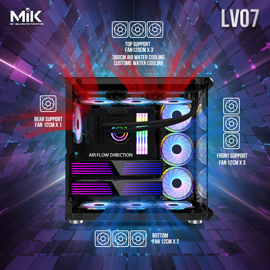 Tên sản phẩm : VỎ CASE MIK LV07 Black Gaming LED RGB - ĐEN